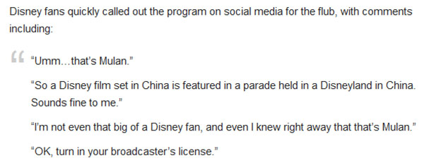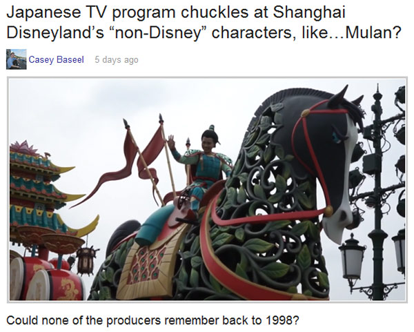 日本电视节目嘲笑上海迪士尼“不太迪士尼”,比如…木兰