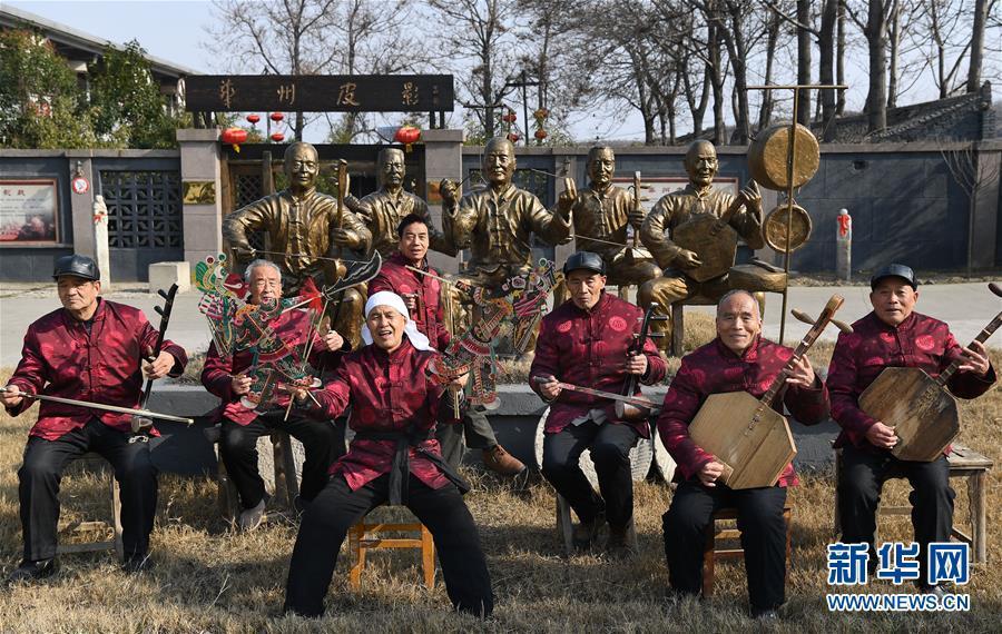 1月11日,7位皮影老艺人在华州皮影文化园留影。在陕西省渭南市华州区皮影文化园,活跃着一支皮影表演团,7位成员平均年龄近70岁。几根竹竿、两只手、一张嘴、一套锣鼓,支撑起所有的人物和情节,传达出这曾经风靡一时的民间文娱活动的魅力。华州是中国戏曲皮影戏艺术重要的源头之一。2006年,华州皮影被国务院列入首批国家级非物质文化遗产保护名录,华州皮影得到了各方面的支持。2015年5月,华州成立影源文化发展有限公司,并将刘华、吕崇德等7位民间皮影老艺人招聘到皮影文化园,集中搜集、整理、表演传统皮影传统剧目,展示华州皮影的独特魅力。新华社记者 陶明 摄 图片来源:新华网