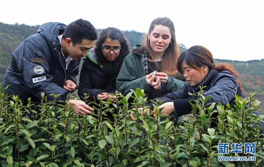3月22日,外国留学生在浙江宁波镇海区秦山村茶园采茶。当日,十余名来自英国、美国、印度、墨西哥、印尼等国家的外国留学生来到浙江宁波镇海区秦山村茶园采茶、品茶,感受中国传统的茶文化。 新华社发(黄瑞鹏 摄)