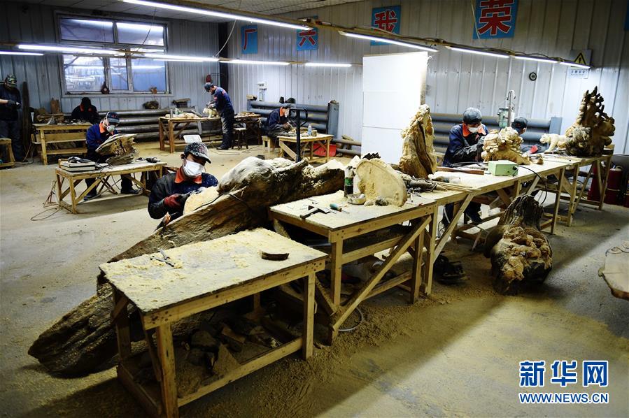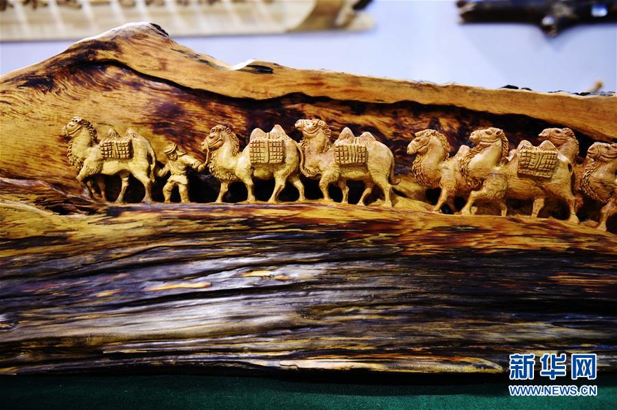 伊春一家公司的负责人在介绍“琥珀木”作品《和谐家园》(5月9日)。有着“红松故乡”之誉的黑龙江伊春市,过去林区群众用于引火的烧材“琥珀木”,近年来经工艺企业开发,变身为一种独具特色的工艺品原料。伊春的“琥珀木”产品2016年得到深度开发,加工企业生产的系列产品年产量达20余万件,推动了林区群众就业和林业经济的转型。新华社记者王建威摄