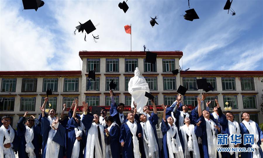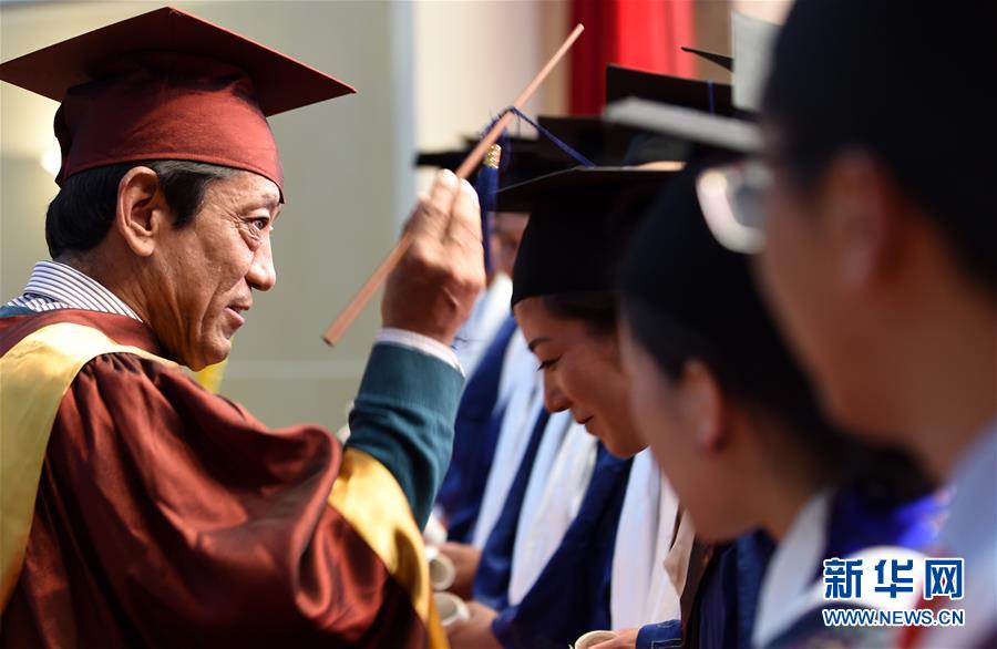6月6日,西藏藏医学院硕士毕业生与本科毕业生合影留念。当日,西藏藏医学院举行毕业典礼,24名硕士研究生获得毕业证书。西藏藏医学院是我国唯一经教育部批准的公办藏医药高等学府。1999年,西藏藏医学院被批准为民族医学(藏医)硕士学位授予点。截至目前,西藏藏医学院培养的硕士达到212人。新华社记者 觉果 摄