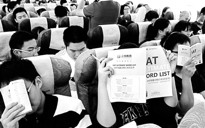 对于打算出国留学的学生而言,SAT、ACT考试是他们必须要经历的一场大考。为了获得理想的分数,他们中的大多数人至少重复考三次左右,每次少说都要花上5000-8000元。 随着各高中国际班的发展和高中出国热,赶考团成为一支潜在的出入境大军,且规模越来越大。不仅旅行社、教育机构有SAT考团,就连学校自己也组织了SAT考团,瓜分这个巨大的蛋糕。