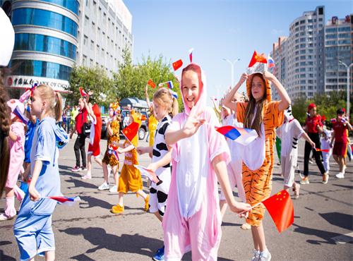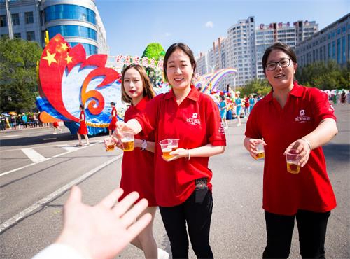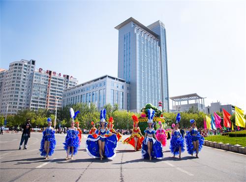“快看,花车来了!”舞姿优美的花仙子、冰清玉洁的天使、滑稽搞笑的小丑、活泼可爱的俄罗斯小精灵……巡游队伍不断向观众挥手致意,掌声、笑声、欢呼声此起彼伏,国旗、鲜花、横幅迎风招展,别致的造型交替变化、穿梭行进,幻化出赏心悦目的阵型。今年花车巡游主题为“一城两国·缤纷中俄”,不仅有代表各县(市、区)、企业的剪纸影绘、火山、白桦树、汉麻、玛瑙等特色风貌和形象的造型设计,还有俄罗斯建筑风貌、风土人情、特色美食等元素装点其间。