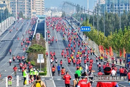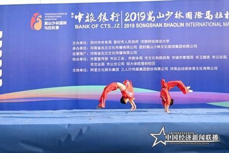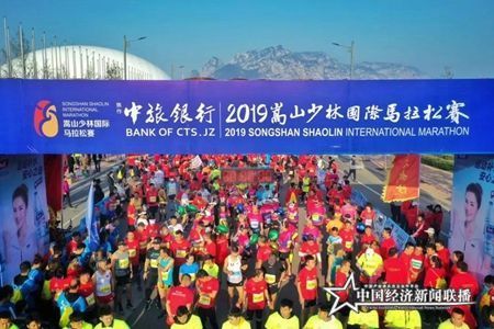 中国经济新闻联播河南登封10月20日电(屈伟林)10月20日上午8:30,焦作中旅银行2019嵩山少林国际马拉松赛在登封市鸣枪开跑。来自全球26个国家与地区的21980名选手汇聚登封,同场竞技。