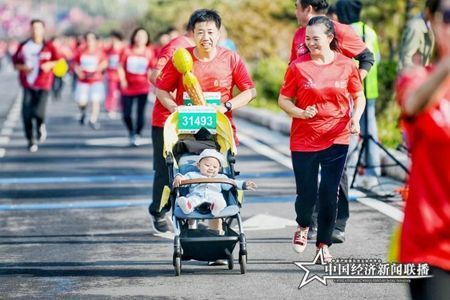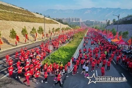 恰逢70华诞之际,本届嵩马赛服采用红黄配色,寄托万千跑友情,为祖国母亲庆生。数万名参赛者组成的红色海洋与嵩山相映,绘成了一幅激情昂扬的画面。