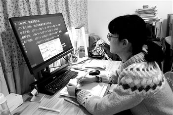 上海卢湾中学的一名教师在家里为学生上“云班课”。 新华社记者 刘颖 摄