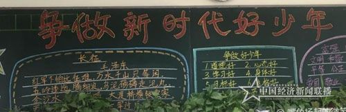 湖北黄石市有色小学开展了“新时代好少年”黑板报评比活动!新时代四好少年标准:热爱祖国、理想远大;勤奋学习、追求上进;品德优良、团结友爱;体魄强健、活泼开朗。少年兴则国家兴,少年强则国家强。作为共产主义的接班人,我们肩负着中华民族伟大复兴的历史使命。从小“扣好人生第一粒扣子”,努力成长为担当民族复兴大任的时代新人。新时代,我们要养成良好的习惯,尊师长,懂礼貌;做错事,即改正;班级事,愿承担;善思考,勤动脑。