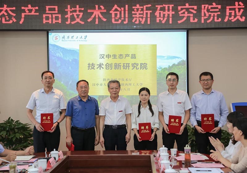 程开耀宣读了陕西省科技厅、汉中市人民政府、陕西理工大学三方共建协议框架。张涛宣读了学校关于研究院院长、副院长人选的聘任文件,聘任经管法学院胡仪元为汉中生态产品技术创新研究院院长、唐萍萍为常务副院长,材料学院院长艾桃桃、化学学院副院长季晓晖和生工学院副院长冯自立为创新研究院副院长。张社民颁发了聘书。