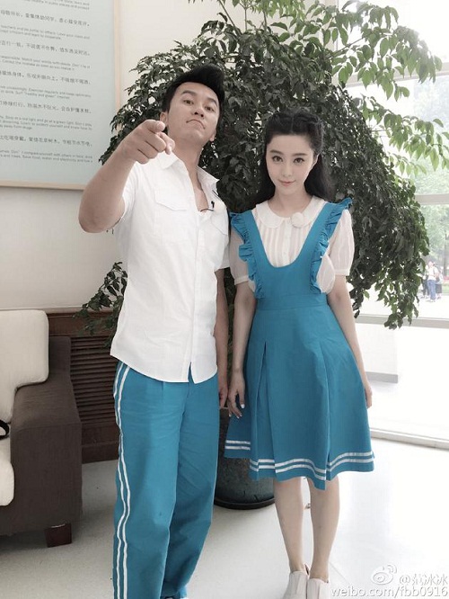 6月5日晚,范冰冰更新微博晒和男友李晨恩爱合影,并跟网友互动出看图填空题,写道:“校花和______?”照片中,范冰冰穿着白色短袖蓝色背带裙,李晨和范冰冰同款白色衬衫蓝色长裤,上演学生制服诱惑,李晨还一副“范冰冰是我的,谁动试试”的架势,发糖虐狗。