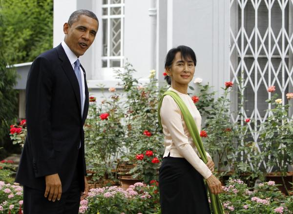 2012年11月19日,昂山素季在缅甸仰光会见奥巴马