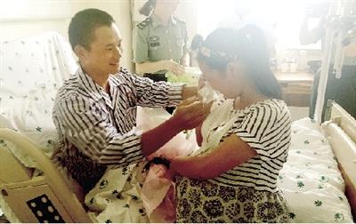 受伤维和战士姚道祥与临产妻子见面