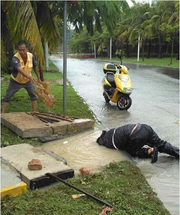 8月19日上午,海南三亚机场遭强降雨,到时部分下水井堵塞严重,排水管道堵塞导致积水越来越严重,如果不及时解决,就会影响西环高铁凤凰机场站、机场候机大楼等。供水站“90后”维修工胡环宇顾不了水有多脏,下水道里有多危险,先后4次俯下身,一头扎进下水井,一边憋气一边徒手在污水里寻找堵点,将堵塞在下水井口处的垃圾一件件挖出来。他头扎下水道、徒手挖垃圾的照片被同事拍下来上传到网络,被网友点赞“风雨中最帅小伙”。