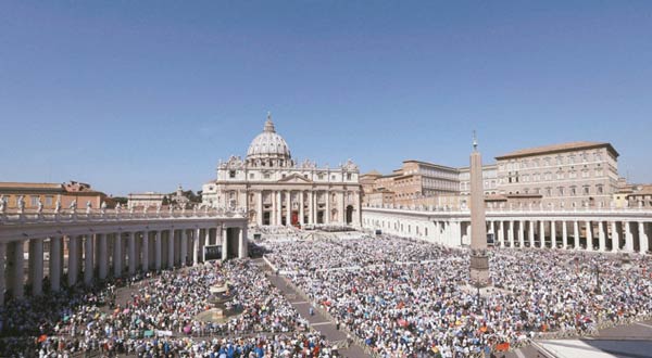 信徒涌入圣伯多禄广场,见证德雷莎修女封圣时刻。