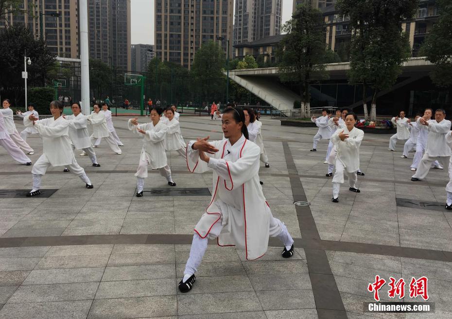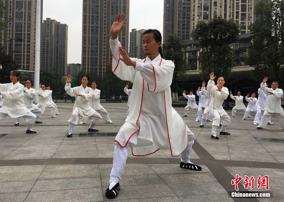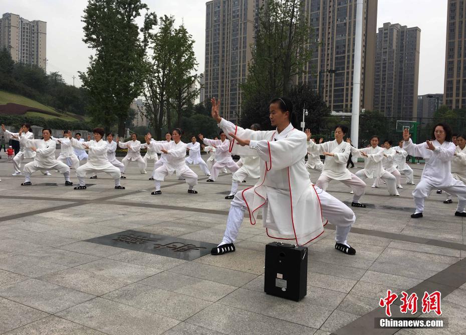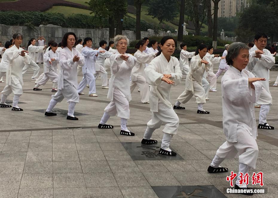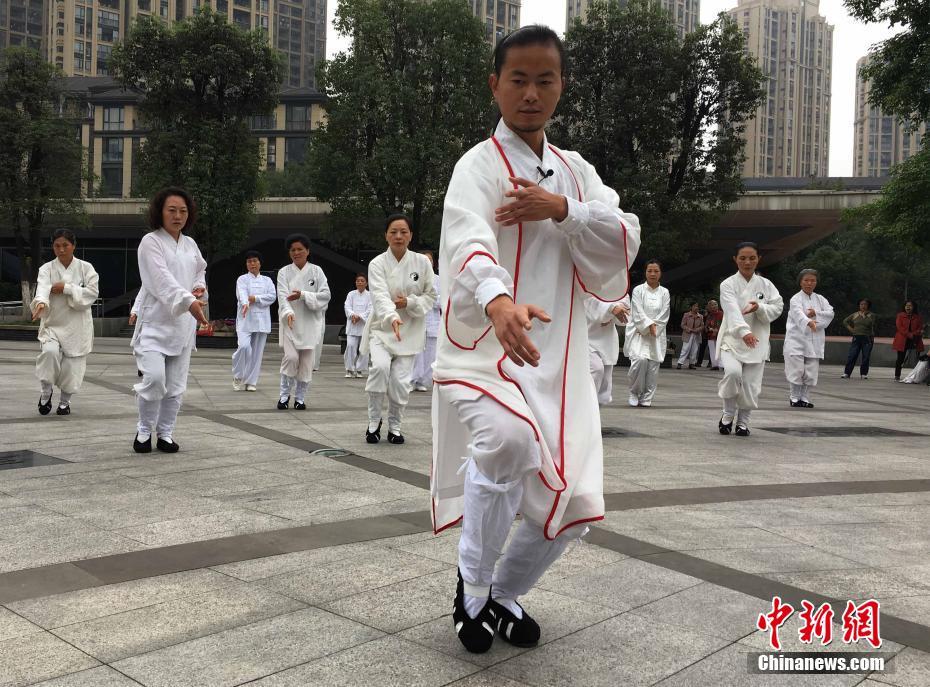 11月2日,重庆90后小伙在龙头寺公园内教武术,吸引百余名老人“拜师”学艺。据悉,这名小伙子叫袁慎峰,今年26岁,由于从小喜欢武术,一心想学武功,便在15岁时上武当山拜师学艺。如今,小伙子自称是武当派弟子,在重庆开起了武术班,吸引众多老人慕名前往“拜师”。 周毅 摄