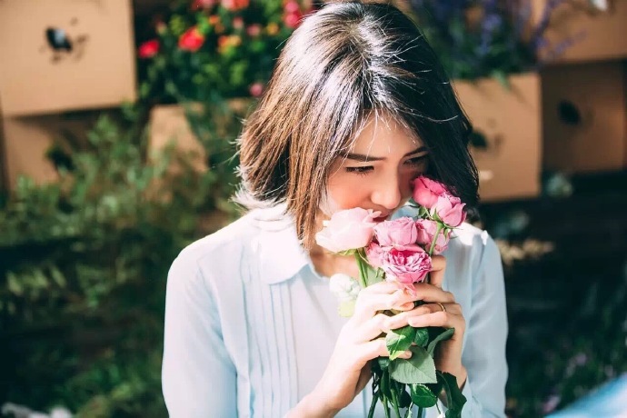 高圆圆剪短发还是那么美!手捧鲜花笑容温婉