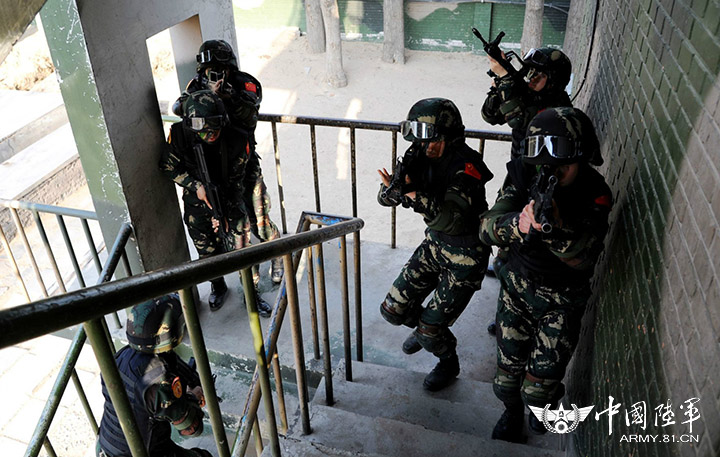 突击小组正在进行班组协同反恐训练
