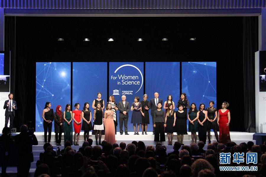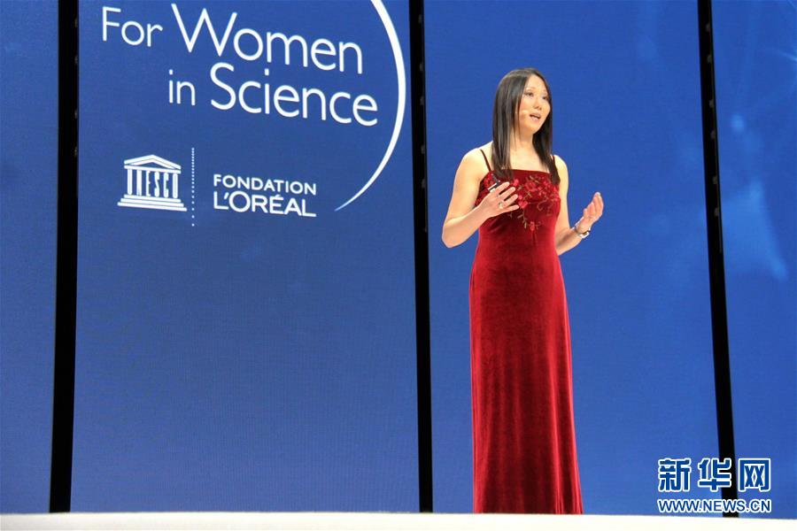 3月23日,在法国首都巴黎,华人科学家鲍哲南发表获奖感言。 2017年度“世界杰出女科学家奖”颁奖典礼23日晚在巴黎举行,美国斯坦福大学华人教授鲍哲南和另外4位女科学家获得这一奖项。鲍哲南长期致力于研究柔性电子。联合国教科文组织发布的消息说,这一奖项是为表彰她在开发人造皮肤领域做出的贡献。她领导的团队开发出一种能够感知压力并与大脑沟通的柔性人造皮肤,也许有一天会帮助用假肢生活的人获得真实触感。新华社记者 张曼 摄