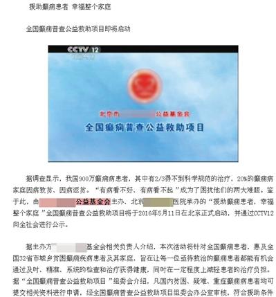 这条消息一度在央视12套播出,并在北京市二十一世纪公益基金会官网挂出。不到半个月,上述活动消息在二十一世纪公益基金会官网悄悄下线,此民营医院微信公众号中的癫痫患者普查信息亦被清除。