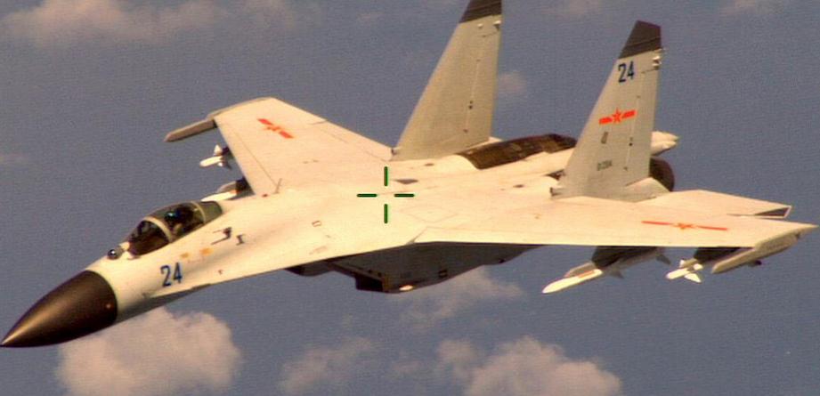 美方公布中国海军航空兵一架歼-11飞机抵近拦截美侦察机画面
