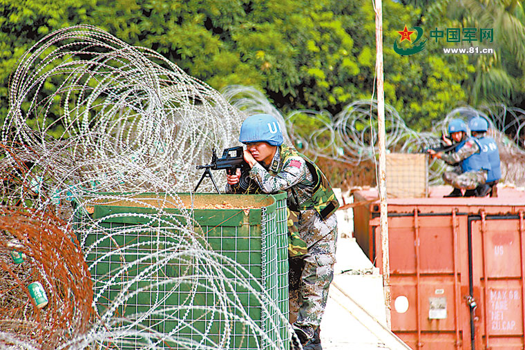 中国赴利比里亚维和部队组织防卫演练