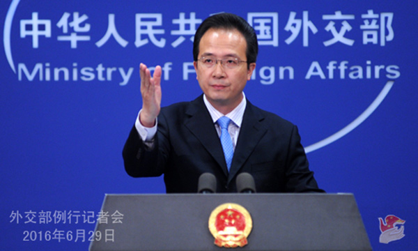 对此,我外交部发言人洪磊6月29日发表谈话: