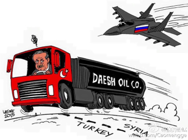 漫画:土耳其总统埃尔多安驾驶IS油罐车,逃避俄罗斯空袭