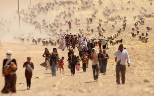 2014年8月,“伊斯兰国”进军辛贾尔山,屠杀当地信仰原始宗教雅兹迪教的雅兹迪库尔德人。一个月前,伊拉克库尔德佩什梅格武装还在嘲笑伊拉克军“竟无一人是男儿”,此时却提前跑路,留下当地雅兹迪平民任由“伊斯兰国”极端分子屠杀。当地男子被杀,女子被掳为性奴。