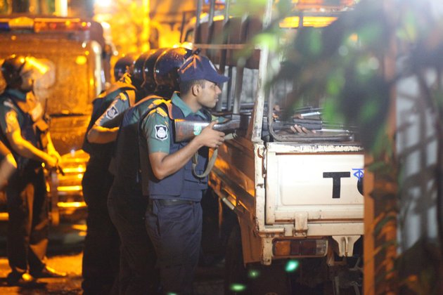 警方事发后封锁了该餐厅周边区域,并与武装分子发生交火。一名不愿透露姓名的警官告诉新华社记者,达卡一个警察局的主管警官萨拉赫丁·汗在与武装分子的交火中身亡。随后,另一名受重伤的警官不治身亡。警方说,另有至少40人受伤。