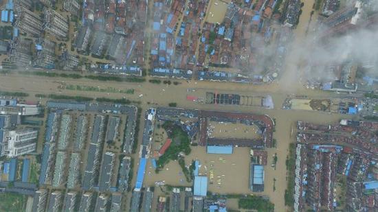 连续多日强降雨后,5日晚到6日晨,武汉再遭强降雨袭击。受江河湖库水位暴涨影响,当前武汉城区渍涝严重,全城百余处被淹,交通瘫痪,部分地区电力、通讯中断,目前武汉已启动排渍红色预警,企事业单位调整上班时间,减少出行。