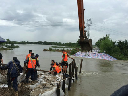 7月5日晚,湖北省鄂州市消防支队接鄂州市政府命令,由于葛店曹家湖农场段下游水位暴涨,为避免对武黄高速通行产生影响,该段约20余米泄洪口需要合围。