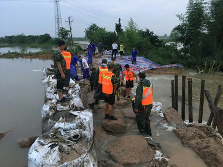 6日早上,鄂州市消防支队立即调集出动40余名官兵参加行动。9时30分,消防官兵赶到现场时发现,原本作为曹家湖的一处分洪口急需合围,最大的缺口有20余米,1米多深,水流十分湍急,如果不尽快对决口进行合围封堵,分洪口面积将会很快扩大,并对武黄高速通行产生严重影响。
