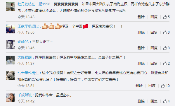 网友们的留言虽各不相同,但纷纷表达着同一个观点,那就是:捍卫一个中国,捍卫南海主权!