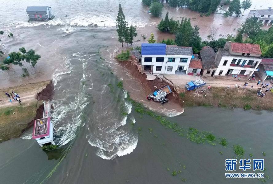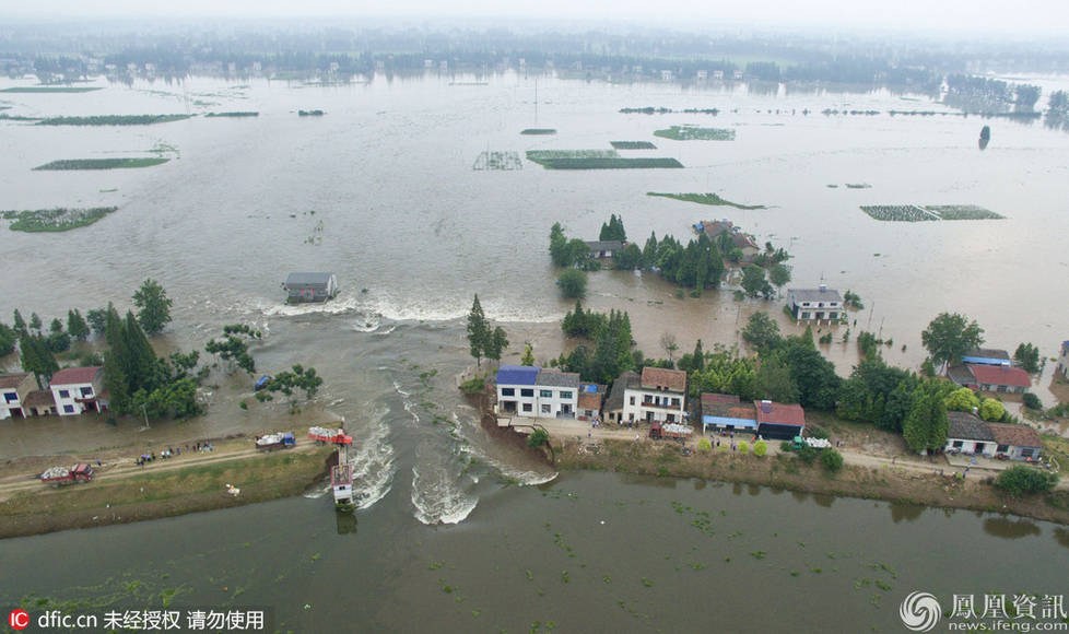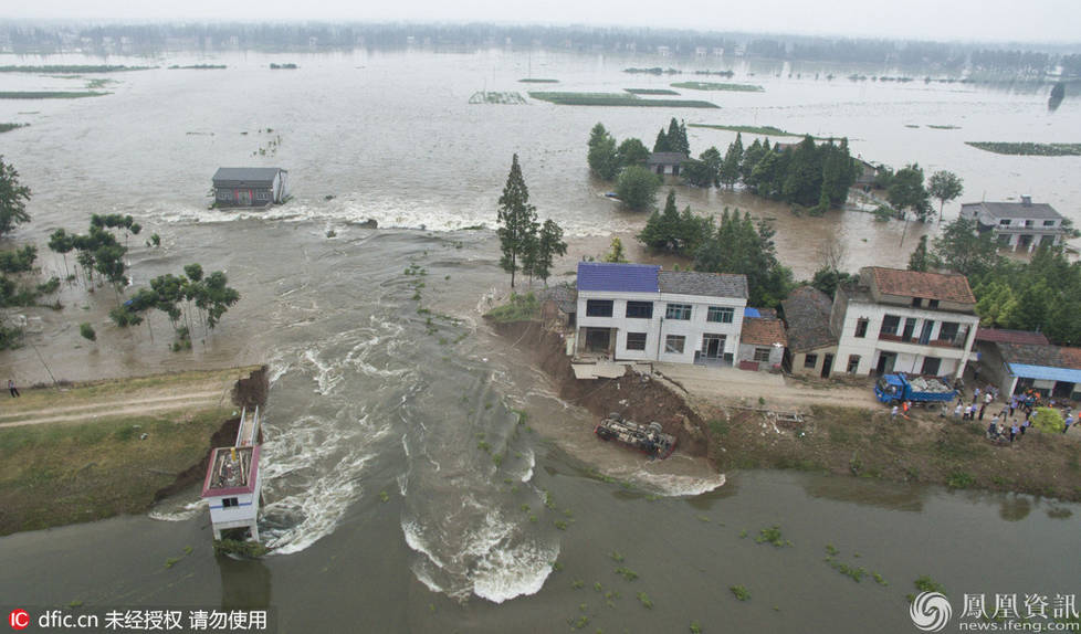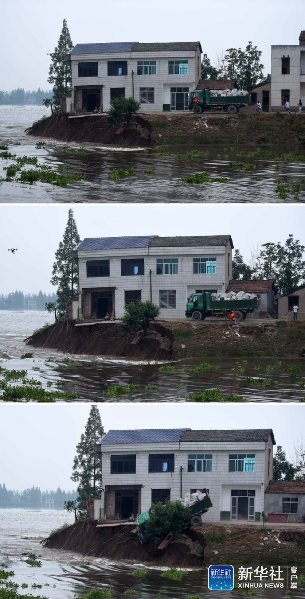 10日上午,湖南省华容县新华垸的治河镇南堤红旗闸管身新老土结合部位发生渗漏,随后险情迅速恶化,最终在10时57分堤身下沉并溃口,滔滔洪水冲入新华垸。截至昨晚9时,约2.36万人已被转移。在抢险救援中,身系安全绳的抢险人员驾驶着载满麻石的卡车驶向溃口,在卡车坠入溃口前跳下卡车,用连车带石的方式封堵溃口。预计溃口复堤在11日下午完成。