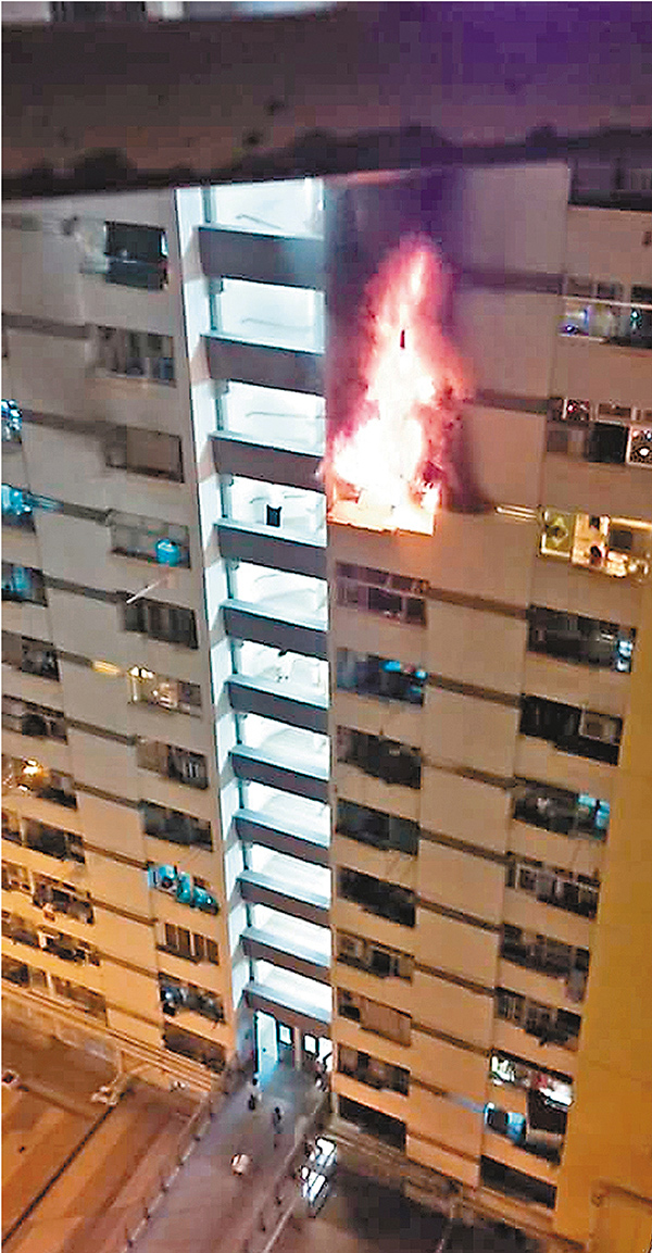 事发于昨日凌晨1时40分,上址两个单位几乎同时冒烟起火,大厦多名居民发现纷纷报案,在消防员到场前,其中一家三口单位的火势已迅速蔓延全屋,烈焰及浓烟由露台向外喷窜,其间有住客更目睹一个火人攀出窗外挣扎呼救,约半分钟终不支飞堕至4楼平台。