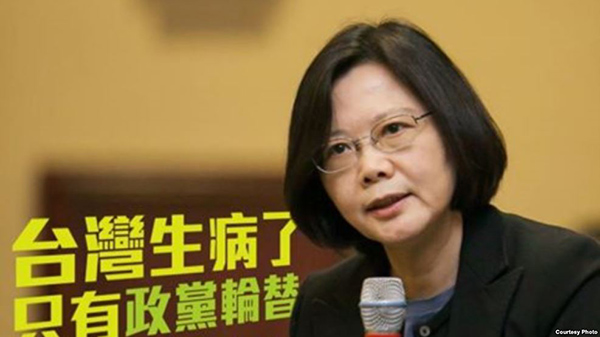 2015年9月,蔡英文在为竞选造势时说,台湾生病了,要把病治好,只有一个办法,那就是“政党轮替”。