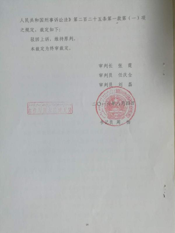 8月14日,王增营的辩护律师雷小冬称,他于当日收到了该案的终审裁定,新疆克孜勒苏柯尔克孜自治州中级法院(以下简称克州中院)维持一审判决,认定王增营、张培凤夫妇构成寻衅滋事罪。