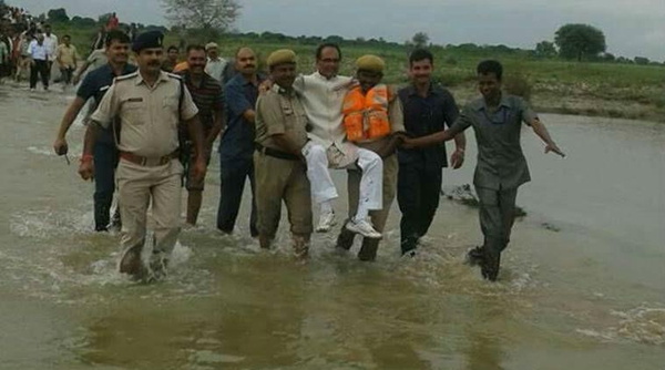 官员视察灾情,本是一件平常的公事,然而近日印度中央邦首席部长的做法却引起广泛争议,原来这位官员访问洪水灾区时,被拍到由当地警察抬着过河,而当时积水才至脚踝。