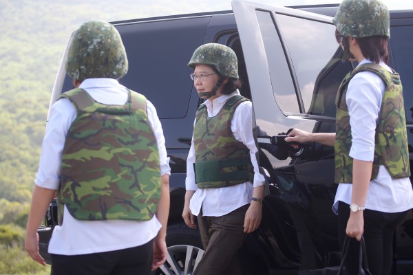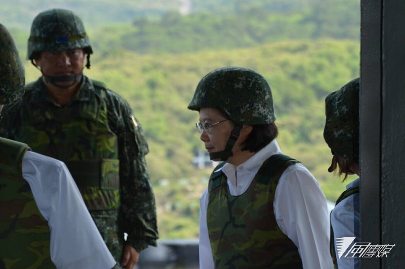 蔡英文在25日上午视察八军团在屏东三军联训基地仁寿营区举行的“联勇操演”实弹演习,这也是她520就任后,首度以“三军统帅”的身份视察实兵军事演习。