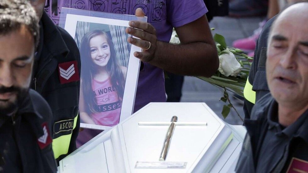 主持葬礼的主教迪埃尔科莱(Giovanni d'Ercole)特别提到9岁女童茱莉亚(Giulia Rinaldi),她在地震中用身体保护着5岁大的妹妹焦尔吉娅(Giorgia)。妹妹最后在瓦砾堆中成功获救,但朱莉娅却不幸遇难。一名叫Andrea的消防员在灵柩上,留下一封感人的信: