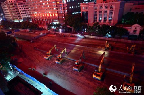 据人民网8月27日报道,8月26日22时28分,随着一阵鞭炮声的响起,近百台挖掘机发出隆隆的敲击声,顿时,烟尘四起,服役了24年的南昌市永和门立交桥一点点被“侵蚀”,从高空俯瞰,拆除现场颇为壮观。