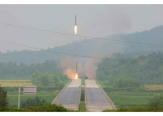 据日本放送协会(NHK)9月6日报道报导,继朝鲜于5日连续发射3发弹道导弹后,6日下午通过国营朝鲜中央电视台,公开发布发射导弹的影像。