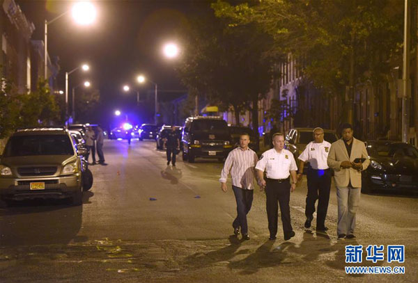 9月24日,警方官员经过美国马里兰州巴尔的摩市的枪击事件现场。