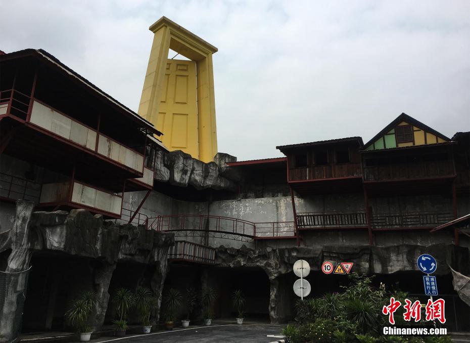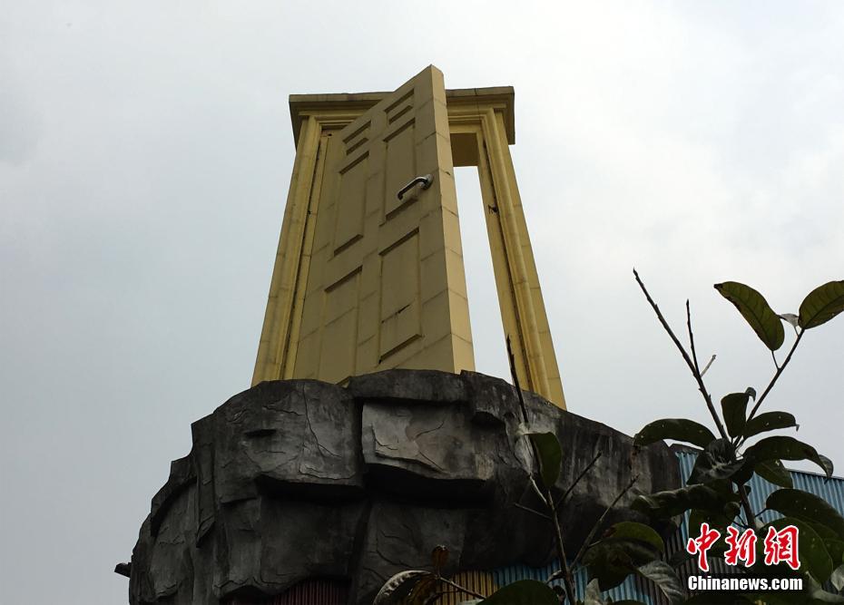 10月23日,重庆一栋房屋顶部悬立着的一扇巨型金色大门,由于特别显眼,被过往民众戏称为“上帝之门”。这扇金色大门位于房屋顶部,高约8米,只有门框和门,半开着的大门,带着一丝神秘色彩,因而被民众戏称为“上帝之门”。图为悬立在房屋顶端的金色大门。周毅 摄
