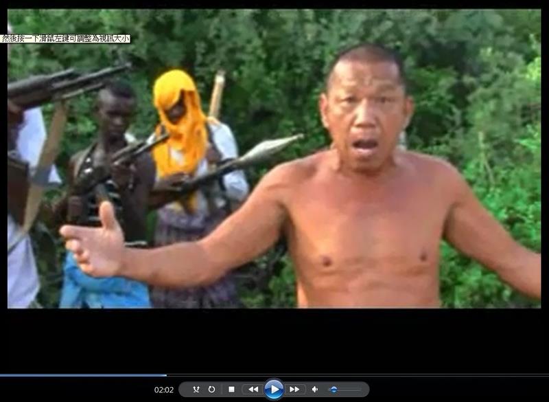 根据蔡正元23日向媒体提供的视频内容,从门中可看到人质蹲坐,海盗在后方持武器监控。打赤膊的沈瑞章在片中喊话,要”台湾善良的老百姓看看,台湾老板洪高雄做的事情,他叫我们到索马里抓鱼,发生事情了,不闻不问,连钱都拿不出来。这批人全都是年轻人,2年10个月了,还不够吗?”