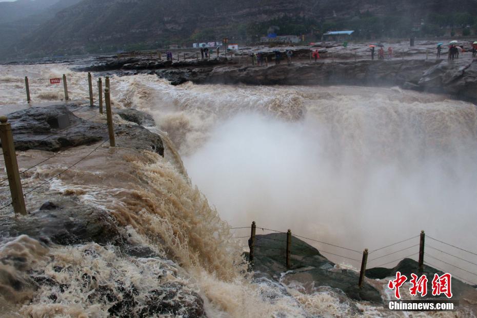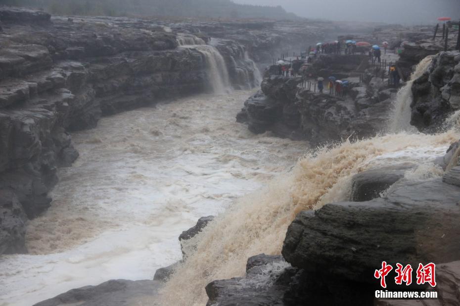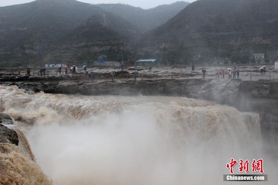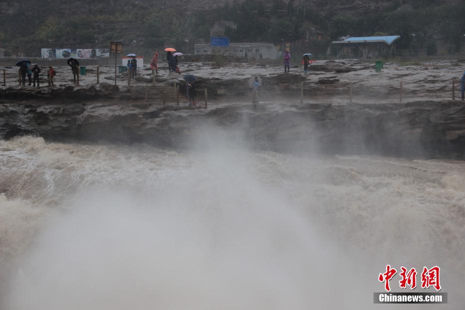 近日,陕西宜川县迎来连阴雨天气,位于该县境内的壶口瀑布景区也出现“水底升烟”的景观。据了解,“水底升烟”主要因为黄河水在壶口的落差较大而激起水雾腾空,好似水底升起的烟雾一般。张一辰 摄