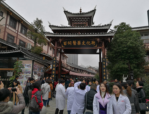 11月27日,凯里市苗侗医药文化街开市,人流如织。