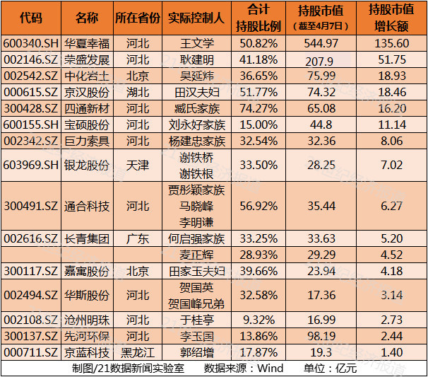 图为部分受益民企实际控制人财富增值