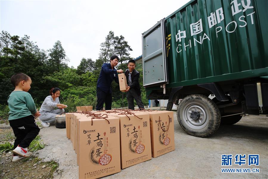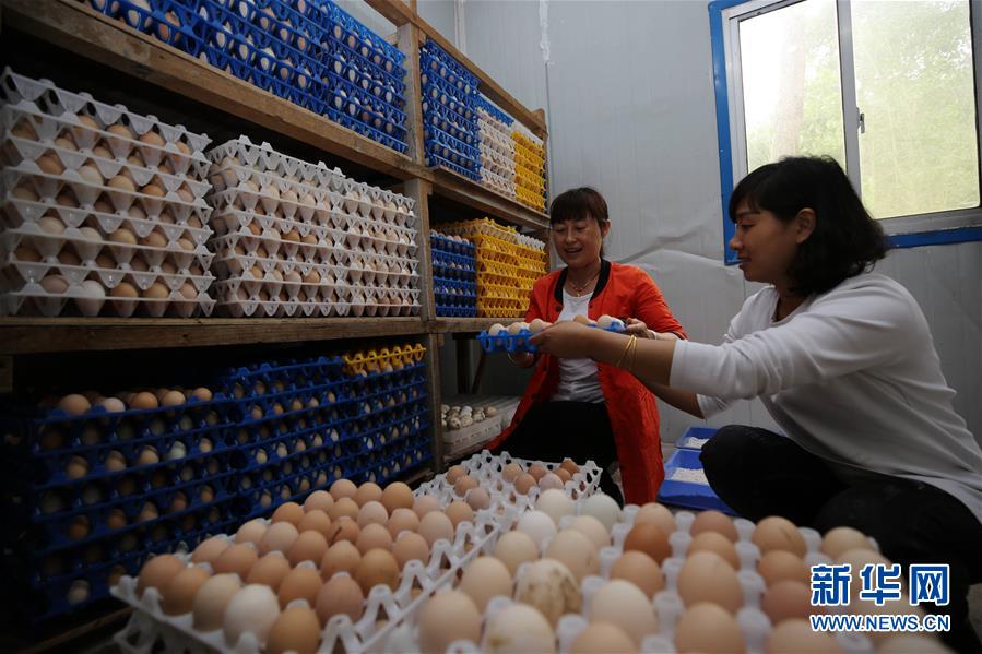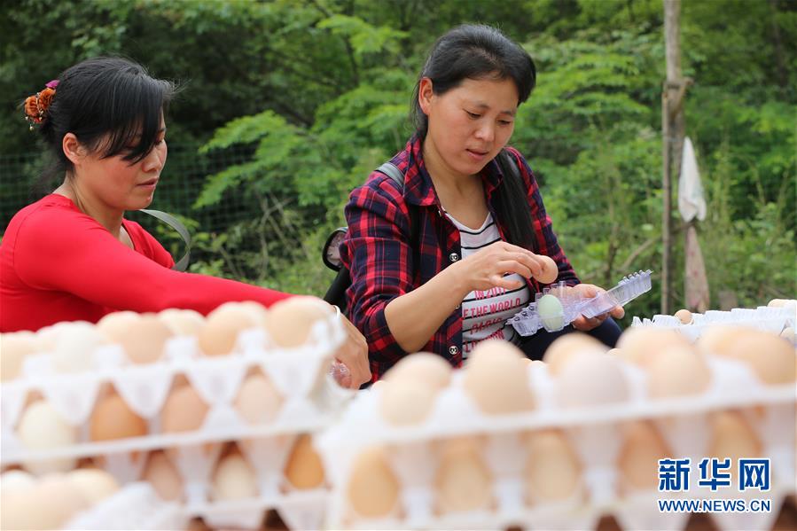近年来,湖南省张家界市武陵源区索溪峪街道双文村依托当地良好的生态环境和艾草资源优势,大力发展艾草蛋鸡生态养殖产业。农技人员运用艾草、松针、杜仲叶粉等组合配方饲料饲养蛋鸡,产出的鸡蛋具有口感好、蛋清稠、蛋白浓厚细嫩等特点,受到消费者青睐,俏销湖南、湖北、山东、北京等地市场。新华社发(吴勇兵 摄)