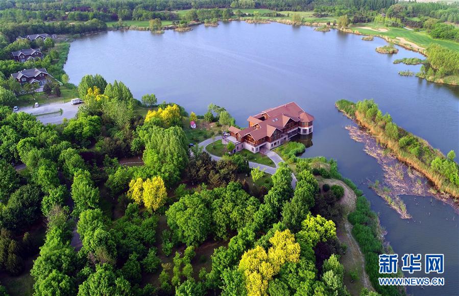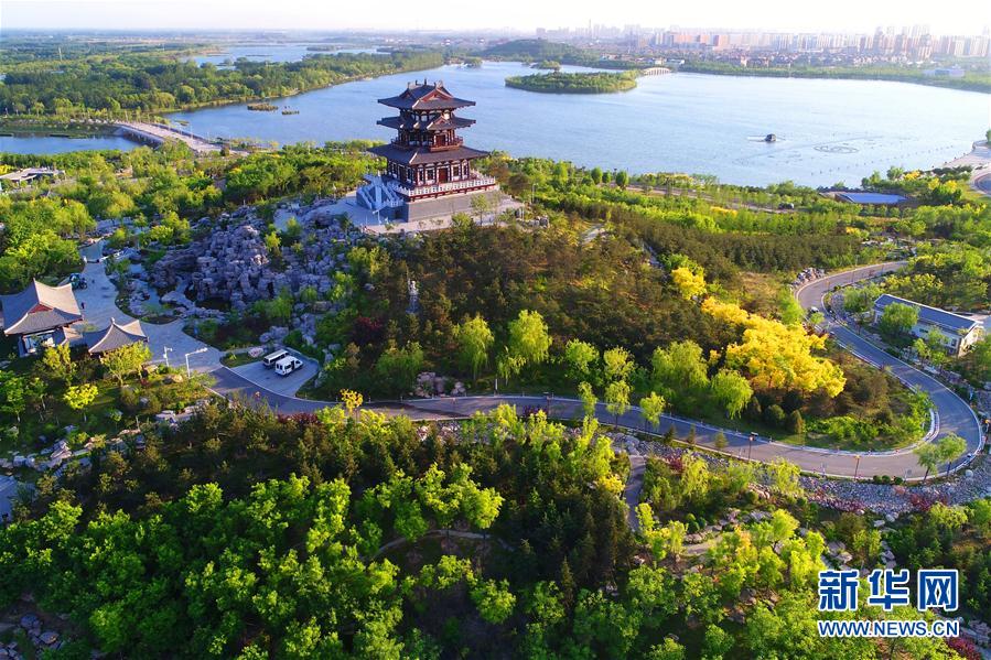 这是5月23日拍摄的唐山南湖景区。唐山南湖曾经是开滦煤矿采煤沉降形成的废弃地,1976年唐山大地震的破坏又加剧了沉降地的塌陷。同时,唐山市的生活垃圾和建筑垃圾都曾往这里倾倒,导致周边环境恶劣。1996年起,唐山开始对南湖采煤沉降地进行综合治理。经过多年不懈努力,昔日的“工业疮疤”已建成一座水域面积11.5平方公里、绿地面积16平方公里的生态公园。如今,风光秀美的南湖成为唐山一张靓丽的城市名片,也成为市民和游客休闲游玩的好去处。新华社记者 牟宇 摄