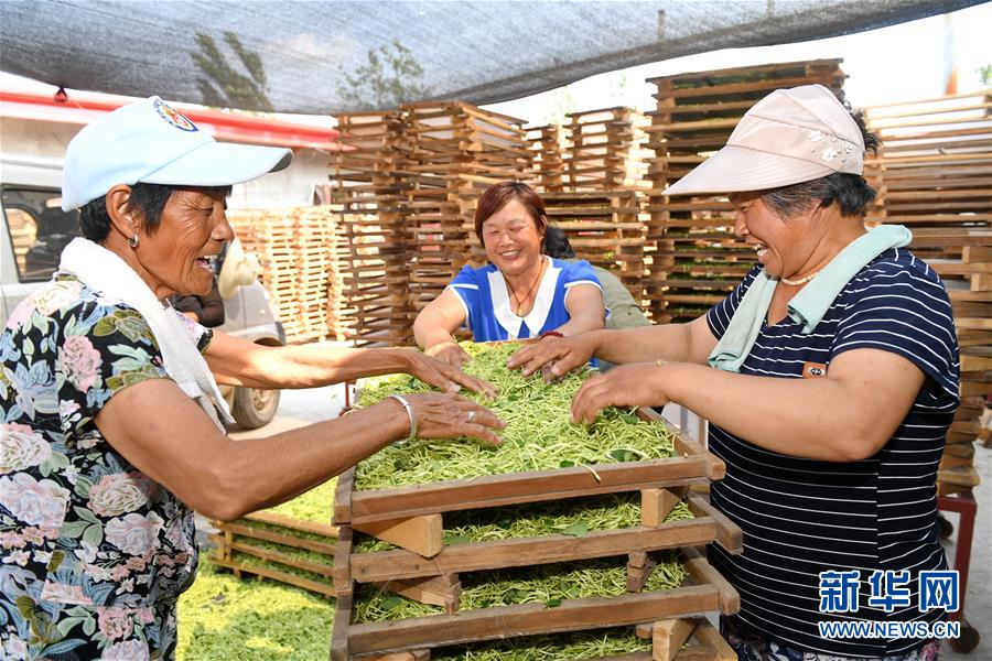 6月8日,河北省巨鹿县小吕寨镇西孟庄村农民在采摘金银花。近年来,河北省巨鹿县依托当地悠久的金银花种植历史,把金银花产业作为脱贫攻坚的重要手段。目前,巨鹿县金银花种植面积达13万亩,年产值12亿元,涉及4万多农户,金银花产业已成为当地农民脱贫增收的重要途径。新华社记者 牟宇 摄